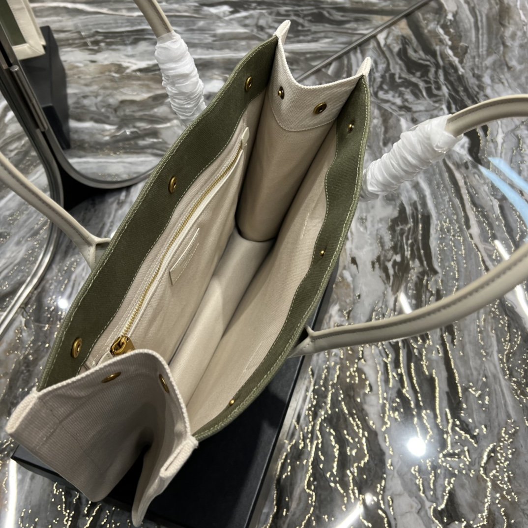 YSSL Rive Gauche Small Tote Bag In Lintlm Military Gretlm For Womtlm 15.4in/39cm YSL 617481FAADI3281