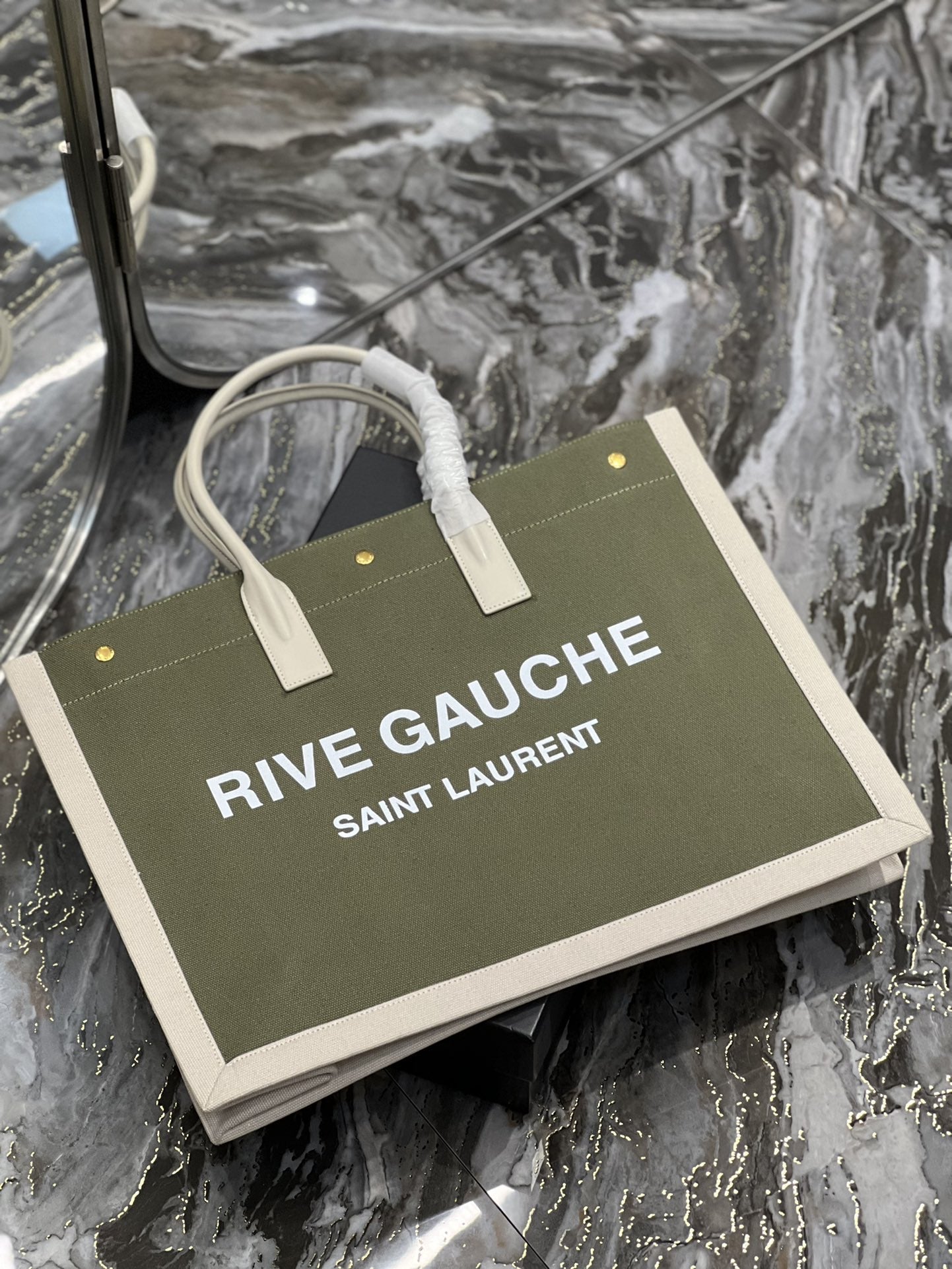 S.L Rive Gauche Tote Bag In Military Gretlm For Womtlm 18.9in/48cm YSL