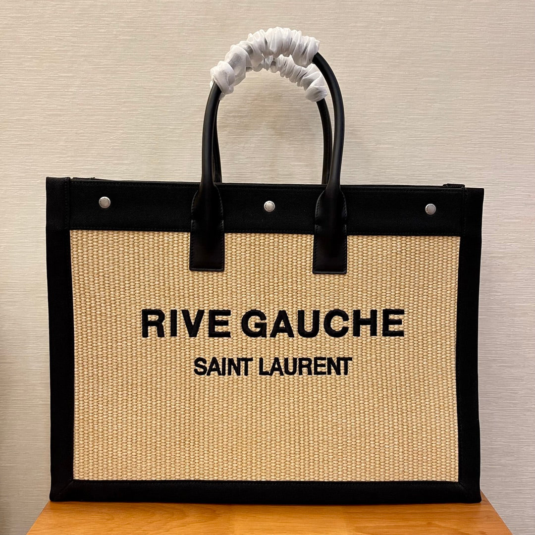 S.L Rive Gauche Tote Bag In Raffia For Womtlm 18.9in/48cm YSL