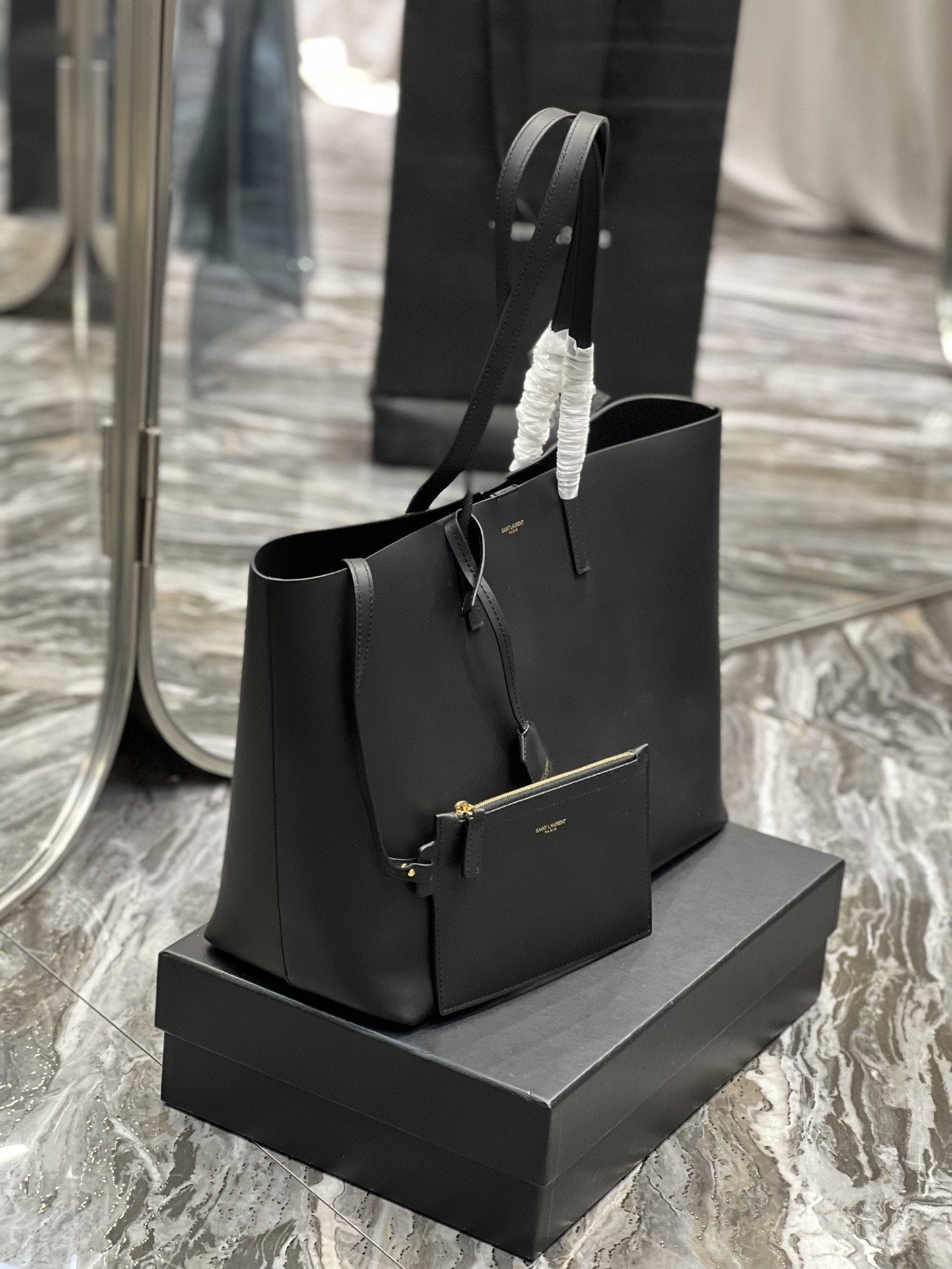 S.L Shopping E/W Tote Bag Black With Gold Hardware For Womtlm 14.5in/38cm YSL 600281CSV0J1000