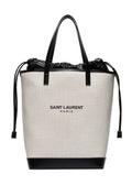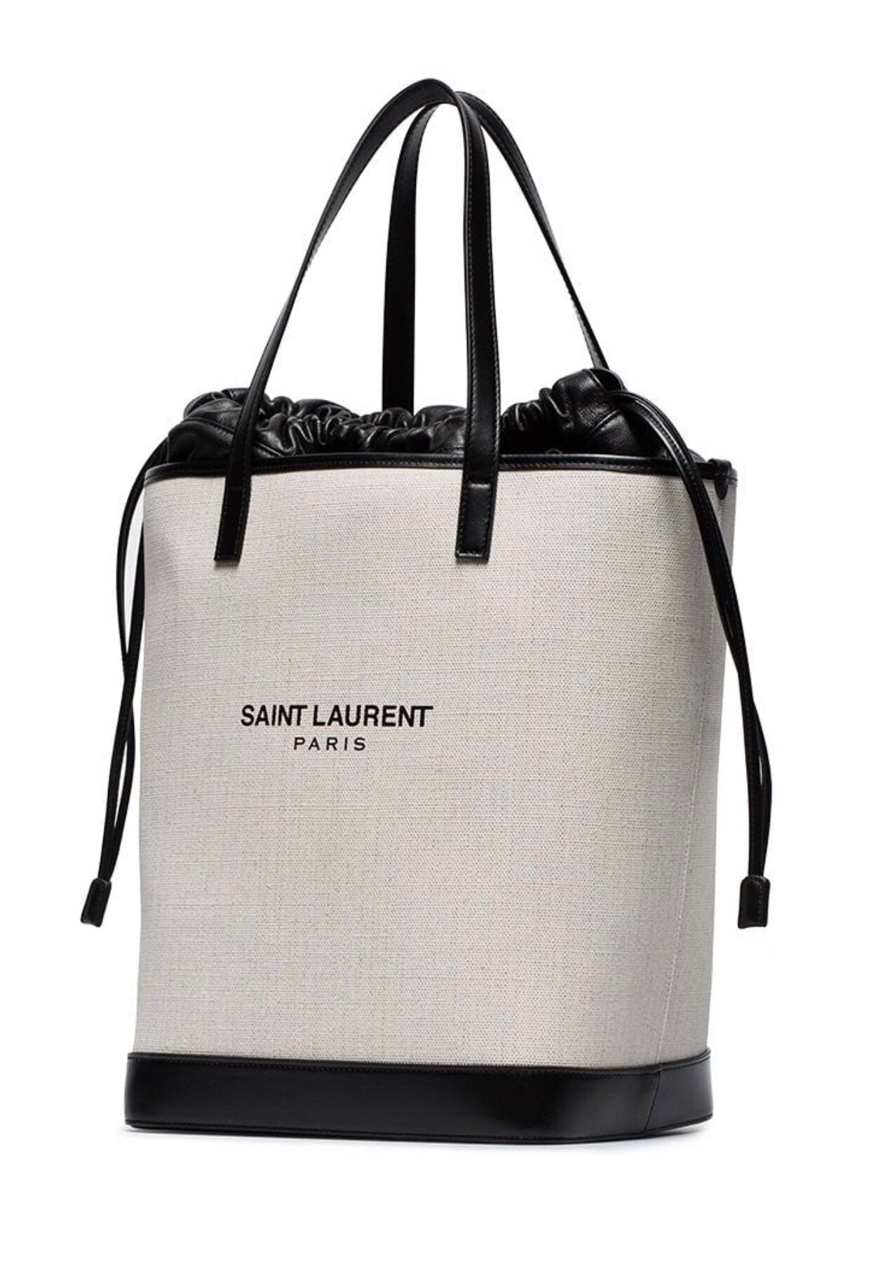 S.L Teddy Medium Canvas Handle Bucket Tote Bag White For Womtlm 13in/33cm YSL