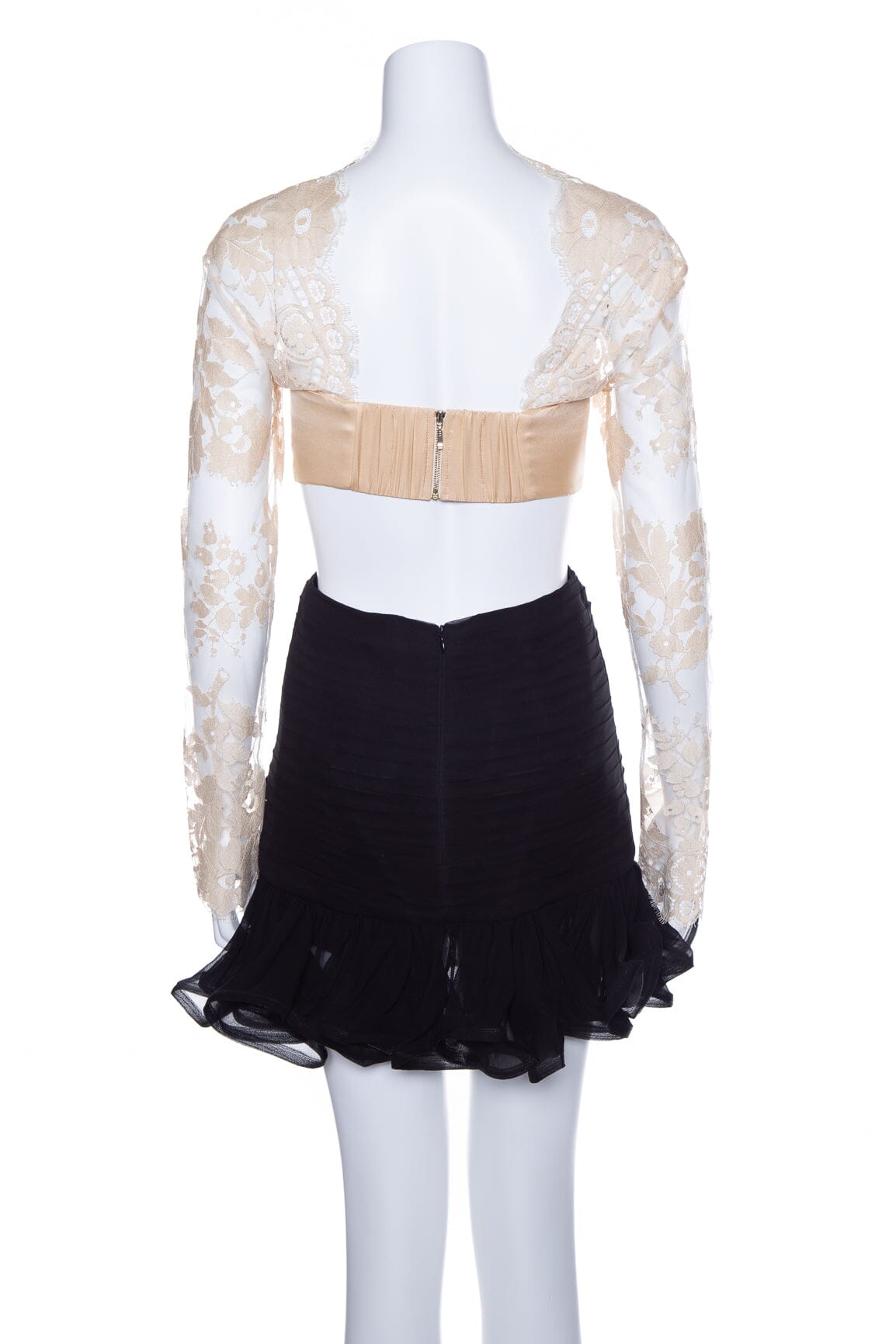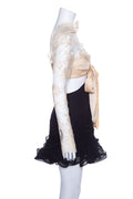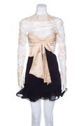 Zimmermann Beige/Black Mini Dress with Lace Sleeves and Ruffle Hem. This item is new with tags.