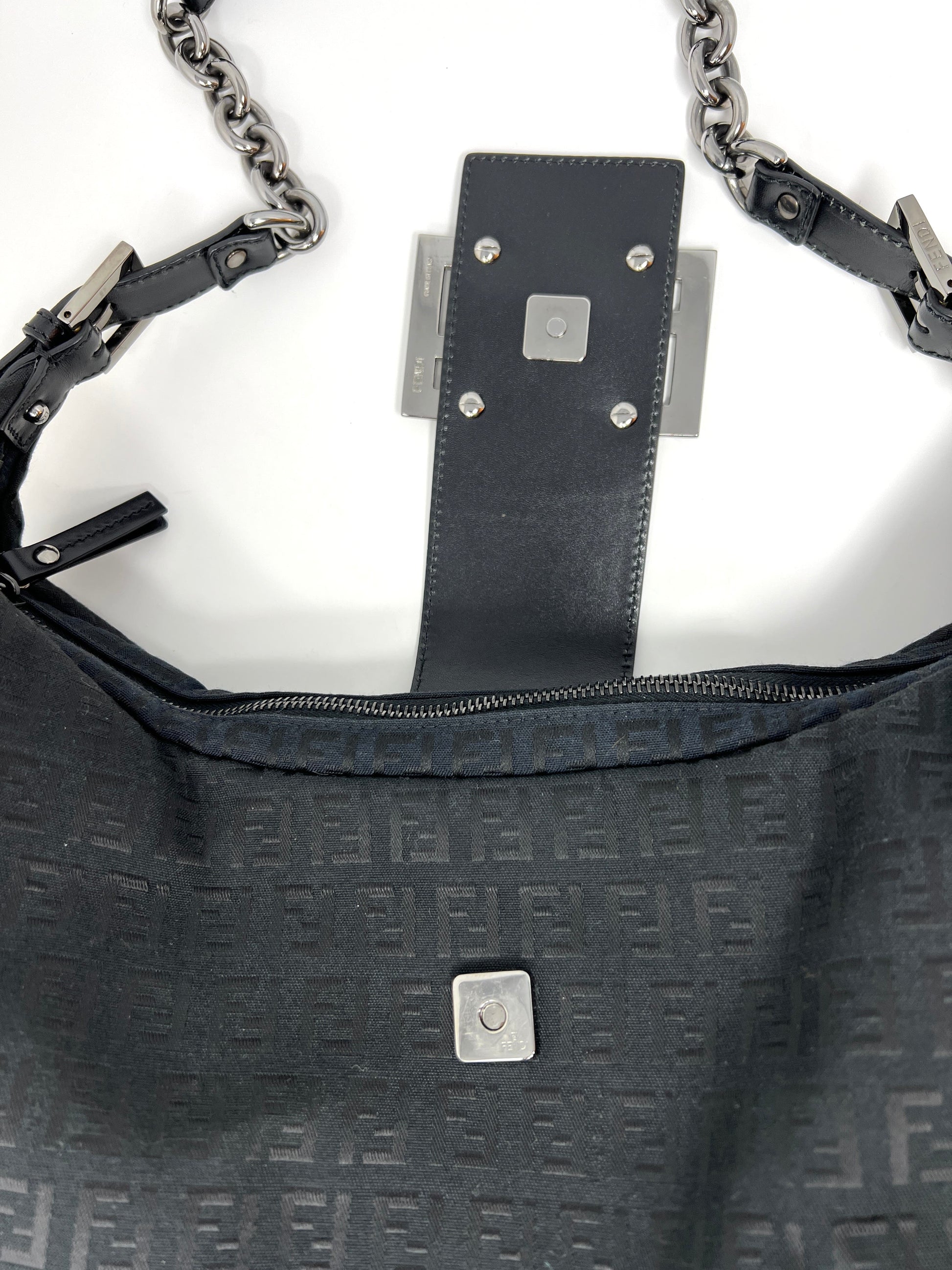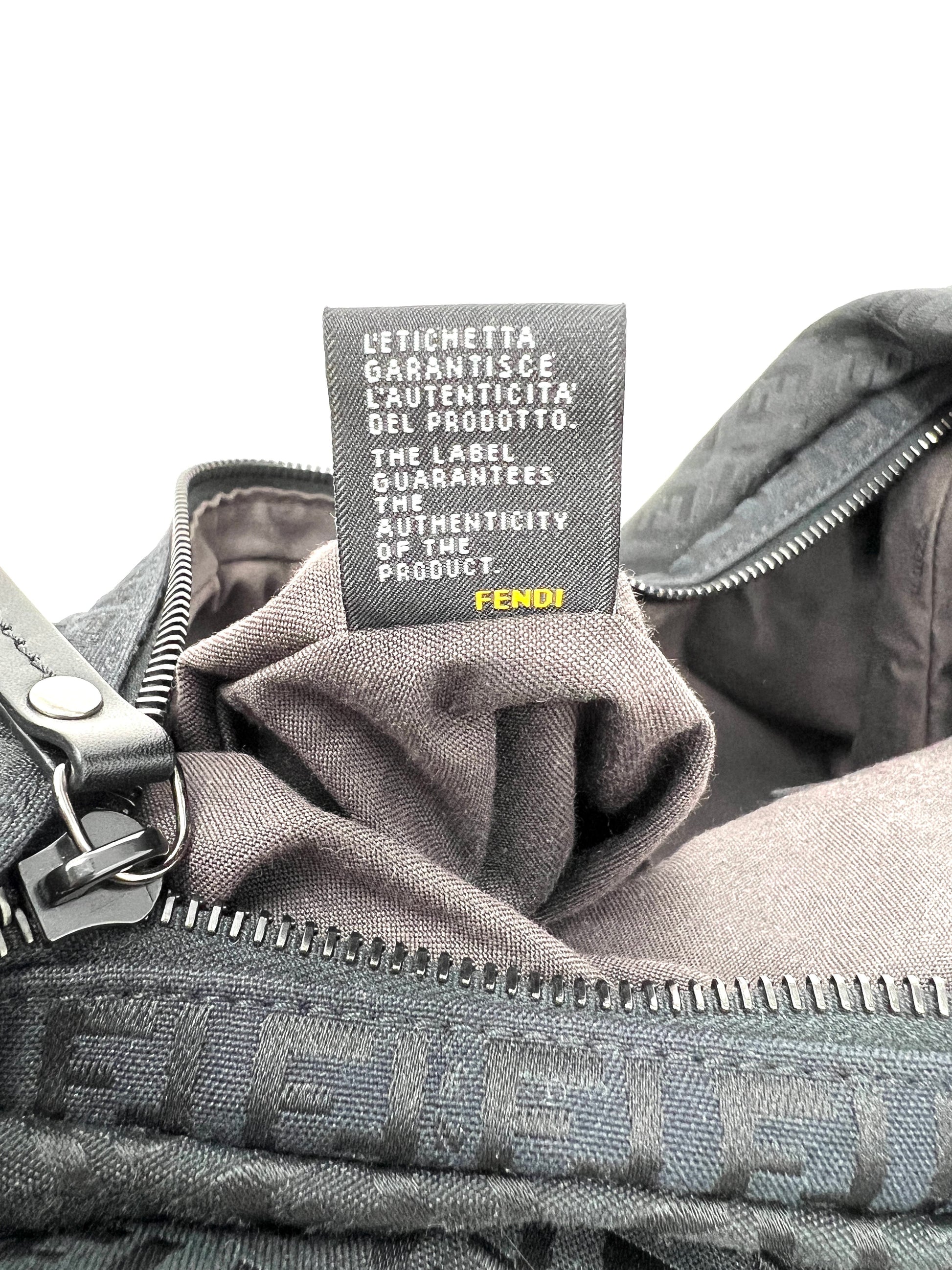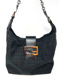 FENDI Zucca Mamma Baguette Shoulder Bag in Black Nylon
